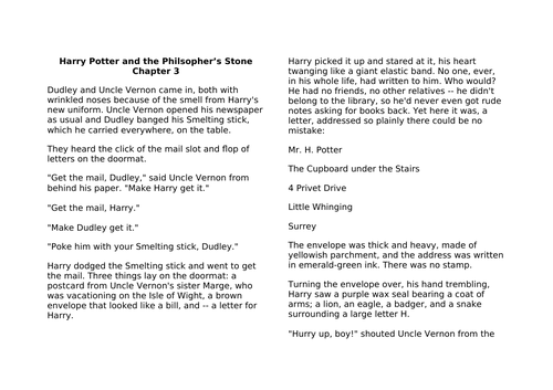 Web Three things lay on the doormat. Web Chapter 3 Summary Punished for the boa constrictor incident Harry is locked in his.